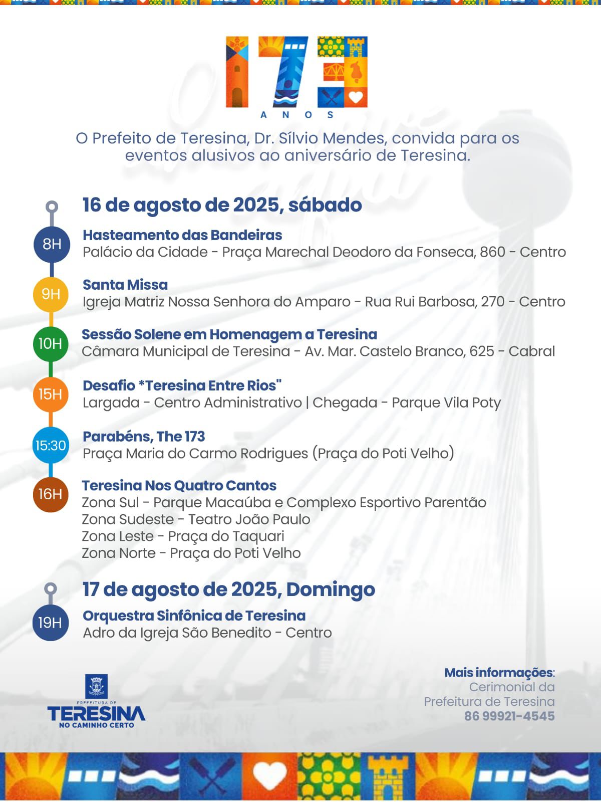 Prefeitura divulga programação do aniversário de 173 anos de Teresina